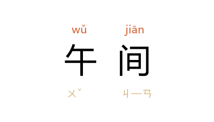 引《儿女英雄传》第七回:“就筐子里这个人,也是这日午间来打尖的;那和尚把他关锁在屋里,扣在大筐底下。”高延昌 《我的朋友》:“我看见他躺在床上看书,午间也没去吃饭。”