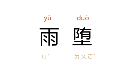 引《资治通鉴·汉桓帝延熹三年》:“新丰侯 单超 卒……其后四侯转横,天下为之语曰:‘ 左 回天, 具 独坐, 徐 卧虎, 唐 雨堕。’”胡三省 注:“按雨堕者,谓其性急暴如雨之堕,无有常处也。”按,《后汉书·宦者传·单超》作“两堕”, 李贤 注:“两堕,谓随意所为不定也。今人谓持两端而任意为两堕。”