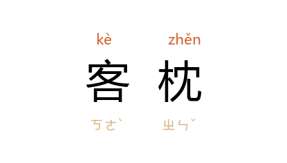 引唐 李商隐 《酬令狐郎中见寄》诗:“朝吟搘客枕,夜读漱僧瓶。”宋 陆游 《宿枫桥》诗:“七年不到 枫桥寺,客枕依然半夜鐘。”元 方回 《次韵仇仁近至日》:“紫逻招魂千里雪,彤庭待漏五更霜。闲人幸脱抅挛外,客枕何庸早起忙。”明 郭奎 《客枕》诗:“客枕睡不着,天高秋气清。”