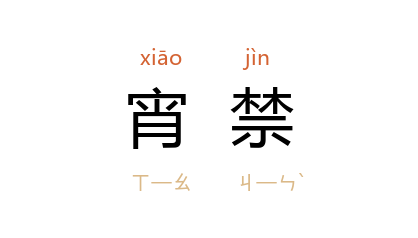 ⒈ 限制民众在夜晚外出的禁令。通常是因为战争、叛乱或遇有重大的变故时,政府为维持社会安定所采取的非常措施。