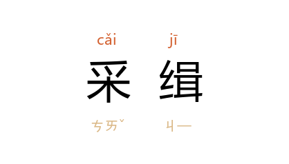 引唐 李白 《黄葛篇》:“黄葛生 洛溪,黄花自绵幂。青烟蔓长条,繚绕几百尺。闺人费素手,採缉作絺綌。”采择编辑。 《宋史·杨徽之传》:“詔 李昉 等采缉前代文字,类为《文苑英华》。”
