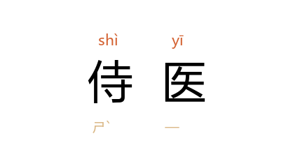引《战国策·燕策三》:“荆軻 逐 秦王 ……是时,侍医 夏无且 以其所奉药囊提 軻。”《史记·扁鹊仓公列传》:“唐安 来学,臣 意 教以五诊上下经脉……未成,除为 齐王 侍医。”《后汉书·李固传》:“﹝ 梁冀 ﹞遂令左右进鴆,帝苦烦甚……语未絶而崩。 固 伏尸号哭,推举侍医。”