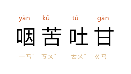引《旧唐书·礼仪志七》:“子之於母,慈爱特深;非母不生,非母不育;推燥居湿,咽苦吐甘,生养劳瘁,恩斯极矣。”谓母亲自己吃粗劣食物,而以甘美之物哺育婴儿。形容母爱之深。 元 无名氏 《神奴儿》第三折:“想着他嚥苦吐甘,偎乾就湿,怎生抬举。”