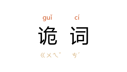⒉ 虚妄饰词,颠倒黑白。也作「诡辞」。
