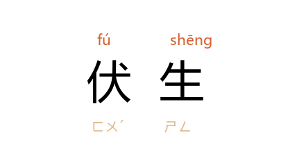 ⒈ 汉 时 济南 人,名 胜,或云字 子贱。原 秦 博士,治《尚书》。 始皇 焚书, 伏生 以书藏壁中。 汉 兴后,求其书已散佚,仅得二十九篇,以教于 齐 鲁 间。 文帝 即位,闻其能治《尚书》,欲召之。然 伏生 年已九十馀,老不能行,乃诏太常使掌故 晁错 往受之。 西汉 《尚书》学者,皆出其门下。相传所撰有《尚书·大传》三卷,疑为后学杂录所闻而成。参阅 清 陈寿祺 《尚书大传序录》。