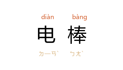 例如:「大陆某些地区因为电力设施不足,只好用电棒来照明。」