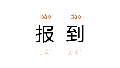 ⒈ 报告自己已经来到,通常为各种集会的一种到会手续。
