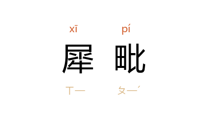 明 马愈 《马氏日抄·犀毗》:“髹器称犀毗者,人不解其义,譌为犀皮……盖毗者,脐也。犀牛皮坚有文,其脐旁四面文如饕餮相对,中一圜眼,坐卧起伏,磨礪光滑。西域人 剸西,剜取之以为腰带之饰……后世髹器倣而为之,曰白犀毗焉。有以细石水磨,混然成凹者,曰滑地犀毗。黑剔为是,红剔则失本义矣。”