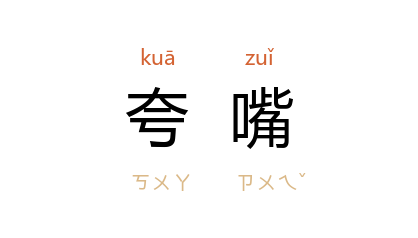 引元 关汉卿 《五侯宴》第三折:“[净 赵脖 揪上云]我做庄家快夸嘴,丢轮扯砲如流水。引着 沙三 去跚撬,伴着 王留 学调鬼。”《东周列国志》第三九回:“于朗 只道 晋侯 已死,在 曹共公 面前,好不夸嘴!”清 李渔 《奈何天·狡脱》:“果然好一位新人,怪不得他夸嘴。”