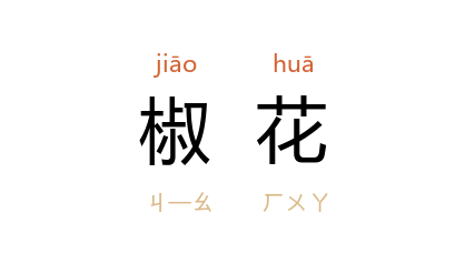 ⒈ 亦作“椒华”。椒的花。