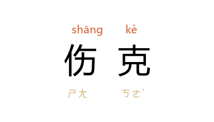引《醒世缘弹词》第八回:“那 郑小姐 的八字,据合婚人説,小姐日元临旺,若是做了男人,必定高官大富,就是女人,也有女掌男权之象;只是煞气太重,那男命敌他不过,要犯伤尅。人家儿子配亲,听了伤尅二字,谁不害怕。”