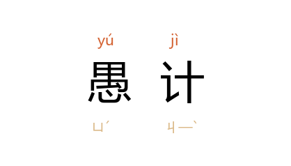 引《韩非子·存韩》:“今贱臣之愚计,使人使 荆,重币用事之臣。”《魏书·杨侃传》:“愚计可録,请为明公前驱。”《说郛》卷六七引 唐 无名氏《国史异纂》:“梁武帝 被围 臺城,朝廷问 均 外御之计,怯怛不知所答,啟云:‘愚计速降为上计。’”
