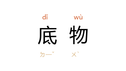 引唐 杜甫 《解闷》诗之七:“陶冶性灵存底物?新诗改罢自长吟。”唐 杜荀鹤 《钓叟》诗:“渠将底物为香饵,一度抬竿一箇鱼?”宋 苏轼 《赠葛苇》诗:“消遣百年须底物?故应怜我不归耕。”