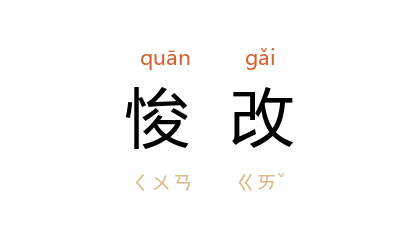 引《后汉书·儒林传上·孔僖》:“假使所非实是,则固应悛改。”《魏书·太宗纪》:“刺史守宰,率多逋慢,前后怠惰,数加督罚,犹不悛改。”清 梁章鉅 《退庵随笔·政事二》:“若仍前奢侈,不知悛改,商人必当从重究治,尔等亦不能辞徇纵之咎。”