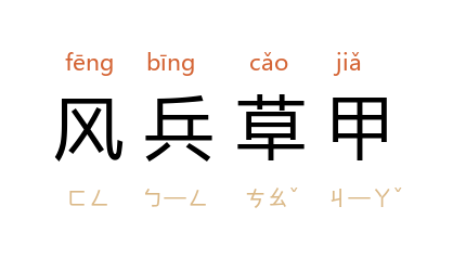 ⒈ 心里惊疑惧怕,听见风声,看见草木,都以为是敌兵。
