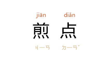 引《水浒传·第四五回》:「便自去支持众僧,又打了一回鼓钹动事,把些茶食果品煎点。」