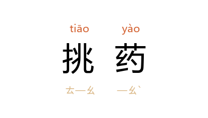 ⒈ 撮药,买药。中药每味所撮甚微,因亦以“挑药”喻稀少,犹言一点点。多以谓钱少。