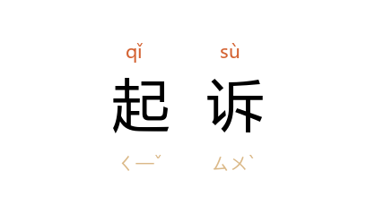 ⒈ 提起诉讼;尤指指控某种罪行或犯法行为,或向法庭控告要求以适当的法律形式惩罚罪行或犯法行为。