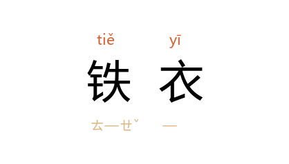 引明·李时珍《本草纲目·卷八·金石部·铁锈》:「释名:铁衣。弘景曰:『此铁上赤衣也。刮下用。』」