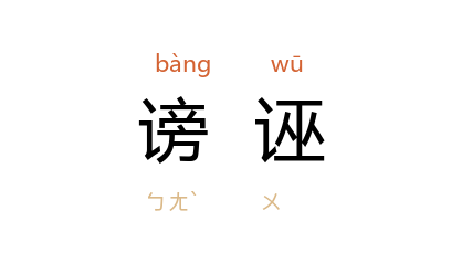 引《魏书·高闾传》:“蠕蠕 使 牟提 小心恭慎,甚有使人之礼,同行疾其敦厚,每至陵辱,恐其还北,必被谤诬。”宋 庄季裕 《鸡肋编》卷中:“范忠宣公 自 随 守责 永州 安置誥词,有‘谤诬先烈’之语。”