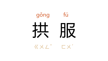 引元 郑光祖 《老君堂》第二折:“我想 唐 家国坐 咸阳,人心拱服。”《初刻拍案惊奇》卷三三:“众人拱服而散。”