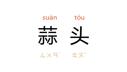 ⒈ 蒜的鳞茎各瓣攒聚为一,形如头状,称为「蒜头」。