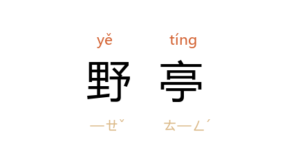引《后汉书·郭伋传》:“﹝ 伋 ﹞遂止于野亭,须期乃入。”宋 陆游 《有客》诗:“有客南山至,相携饭野亭。”清 厉鹗 《冬日移寓葭白斋中诗》之二:“闭门清寂如野亭,四壁铅槧栖餘馨。”