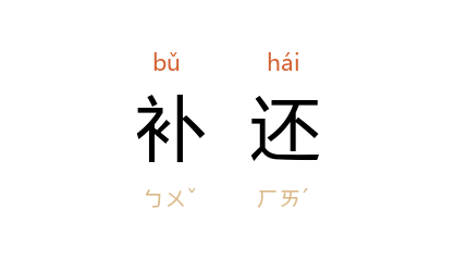 引宋 刘克庄 《最高楼》词:“生有限,望犹奢。补还瞎子重开卷,放教跛子出看花。”《儿女英雄传》第十五回:“今日到此,当着在座的众位,请他们作个证明,要令你借个一万八千的盘缠补还我 牤牛山 的那桩买卖。”