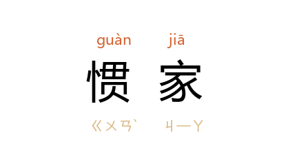 《荡寇志·第四五回》:「众猎户道:『唐衙内不可造次,还让我们惯家在此把守。』」