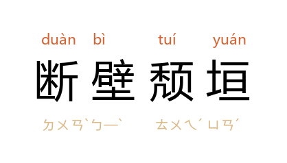 ⒈ 倒塌残存的墙壁。形容破败荒凉的景象。