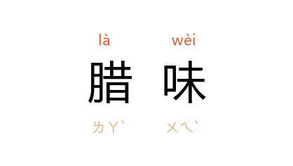 ⒉ 腊鱼、腊肉、腊鸡、腊鸭等食品的总称。