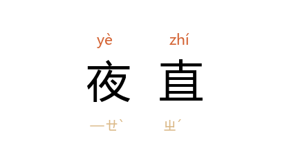 引唐 韩愈 《和席八十二韵》:“綺陌朝游閒,綾衾夜直频。”宋 苏易简 《续翰林志》上:“至皇朝,今揆相 李公 独直禁林,奉旨令每双日夜直,隻日下直,可以永为通式也。”