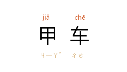 引《左传·宣公二年》:“宋 师败绩,囚 华元,获 乐吕,及甲车四百六十乘。”杨伯峻 注:“甲车即兵车,以马被甲,故名甲车。”汉 扬雄 《羽猎赋》序:“然至羽猎,甲车戎马,器械储偫,禁御所营。”晋 干宝 《搜神记》卷十九:“孔子 曰:‘何不探其甲车,引而奋登?’ 子路 引之。”