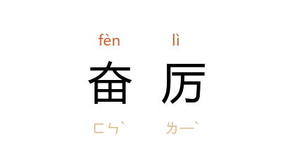 引《后汉书·第五伦传》:“有贼,輒奋厉其众,引彊持满以拒之。”《晋书·苟晞传》:“自奉明詔,三军奋厉,卷甲长驱,次于 仓垣。”宋 曾巩 《都官员外郎胥君墓志铭》:“君少孤,能自奋厉,力学问,工为文章。”章炳麟 《驳康有为论革命书》:“奋厉朝气,内量资望,外审时势。”