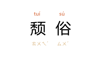 引《后汉书·胡广传》:“广 才略深茂,堪能拨烦,愿以参选,纪纲頽俗,使束脩守善,有所劝仰。”《魏书·游明根传》:“卿独秉冲操,居今行古,有 魏 以来,首振頽俗。”明 张居正 《三辞恩命疏》:“贪进之戒,臣先犯之,何以率先百僚,表正頽俗?”胡韫玉 《舜水先生祠落成敬赋》诗:“俎豆奉典型,力与頽俗抗。”