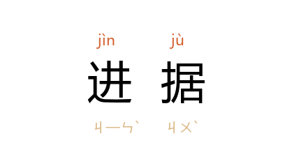 引《晋书·庾翼传》:“臣虽未获长驱中原,馘截凶丑,亦不可以不进据要害,思攻取之宜。”唐 温大雅 《大唐创业起居注》卷一:“三月丁卯, 武周 南破 楼烦郡,进据 汾源宫。”范文澜 《中国近代史》第八章第八节:“﹝ 英国 ﹞不让 沙俄 在 中国 北部扩充势力,也不愿 法国 进据 云南,日本 占领 福建。”