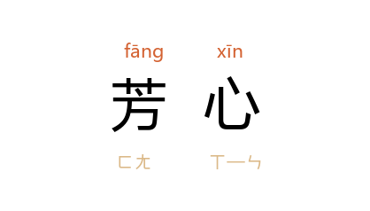 例如:「芳心暗许」、「芳心窃喜」、「寂寞芳心」。