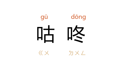 ⒈ 状声词:(1) 形容重物撞击的声音。(2) 形容器物落水时所发出的声响。