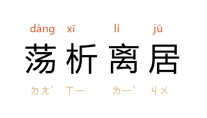 引《书经·盘庚下》:「今我民用荡析离居,罔有定极。」清·段玉裁《六书音韵表》:「韵书如陆法言虽以声为经,而同部者荡析离居矣。」