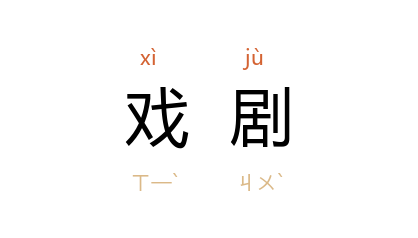 ⒈ 旧时专指戏曲,后用为戏曲、话剧、歌剧、舞剧等的总称。