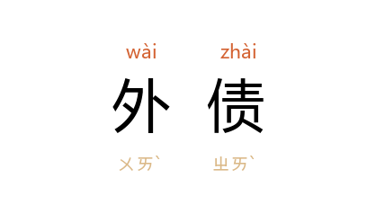 ⒈ 国家向外国借的债。亦指私人或单位向别人、其他单位借的债。