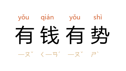 引《水浒传》第四九回:“毛太公 那廝,有钱有势,他防你两兄弟出来,须不肯干休,定要做番了他两个,似此必然死在他手。”许杰 《放田水》四:“有钱有势,是很可以压倒一切的。”