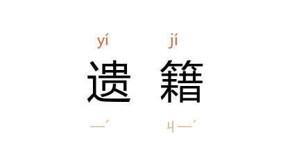 引《隶释·晋张平子碑》:“仰鉴遗藉,驰心哲人。”晋 陆机 《吊魏武帝文》:“览遗籍以慷慨,献兹文而悽伤。”《孽海花》第十八回:“听説 东瀛 从前崇尚 汉 学,遗籍甚多,往往有中土失传之本,而彼国尚有流传。”