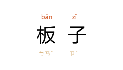 此指壁板。 菡子 《致江幼农》:“﹝妈妈﹞说你发着烧喘着气还在写,她把你的板子和稿纸抢走了。此指书写用的托板。”