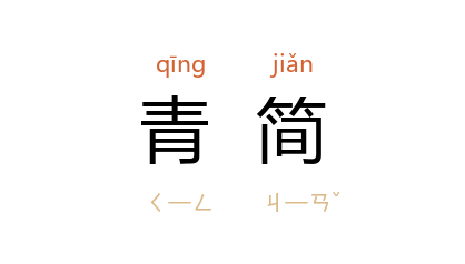 ⒈ 青色的竹简。古人在造纸术未发明前,将文字书写在竹板上。后泛称书籍。唐·白居易〈秘书省中忆旧山〉诗:「厌从薄宦校青简,悔别故山思白云。」