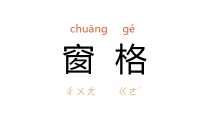 ⒉ 窗上的格子。古时在上面糊纸或纱以挡风。亦指窗扇。