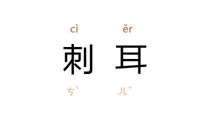引《文明小史·第三六回》:「纬卿听他说的话很觉刺耳,心中有些不乐。」