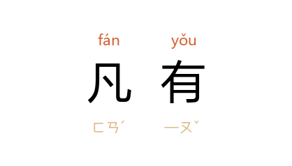引鲁迅 《坟·人之历史》:“凡在地球之上,无间有生无生,决无差别,空间凡有,悉归於一。”鲁迅 《且介亭杂文·病后杂谈二》:“还有部《蜀龟鉴》,都是讲 张献忠 祸 蜀 的书,其实是不但 四川 人,而是凡有 中国 人都该翻一下的著作。”