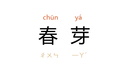 引宋 梅尧臣 《答建州沉屯田寄新茶》诗:“春芽研白膏,夜火焙紫饼。”宋 欧阳修 《虾蟆碚》诗:“共约试春芽,枪旗几时緑。”宋 杨万里 《见澹庵胡先生舍人》诗:“三岁别公千里见,端能解榻瀹春芽。”