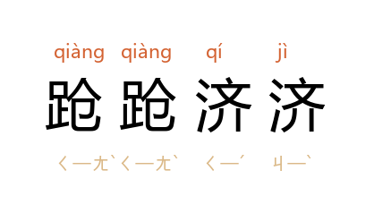 引《诗·大雅·公刘》:“蹌蹌濟濟,俾筵俾几。”明 叶盛 《水东日记·大臣思宠之盛》:“是宜蹌蹌济济感恩图报之多其人,理固然耳。”亦作“蹌蹌躋躋”。 《二刻拍案惊奇》卷十九:“只见蹌蹌躋躋,一羣儒生,将着文卷,多来请教。”